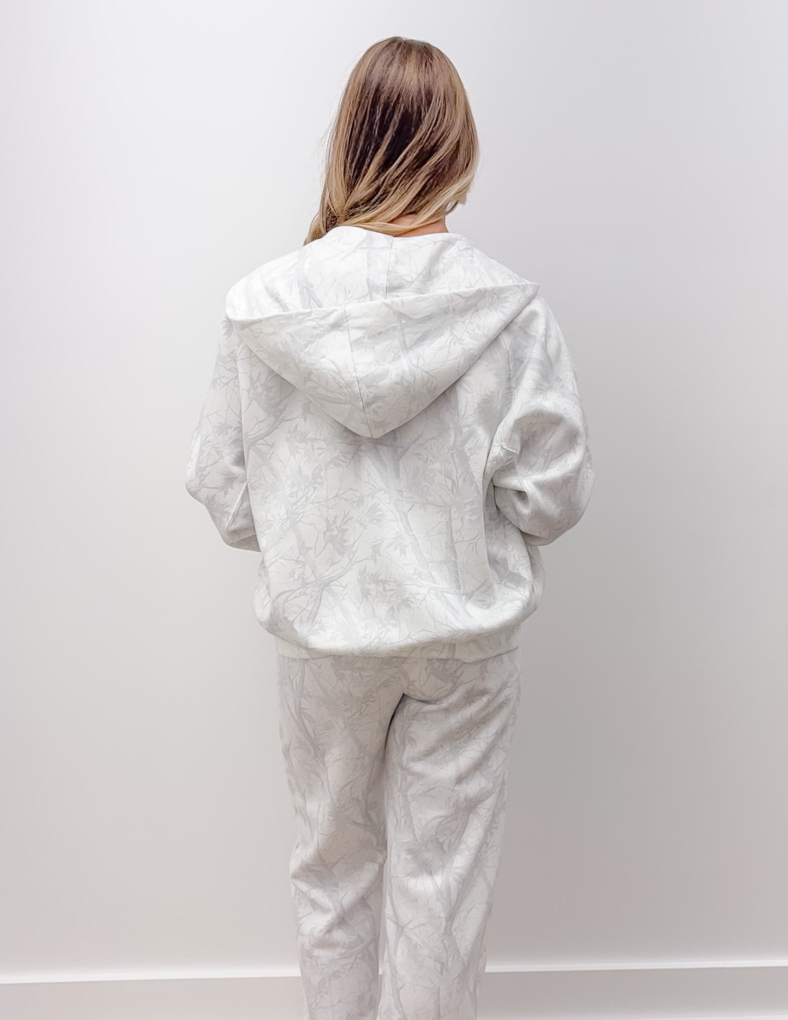 fleece camo relaxed fit zip-up hoodie jacket.