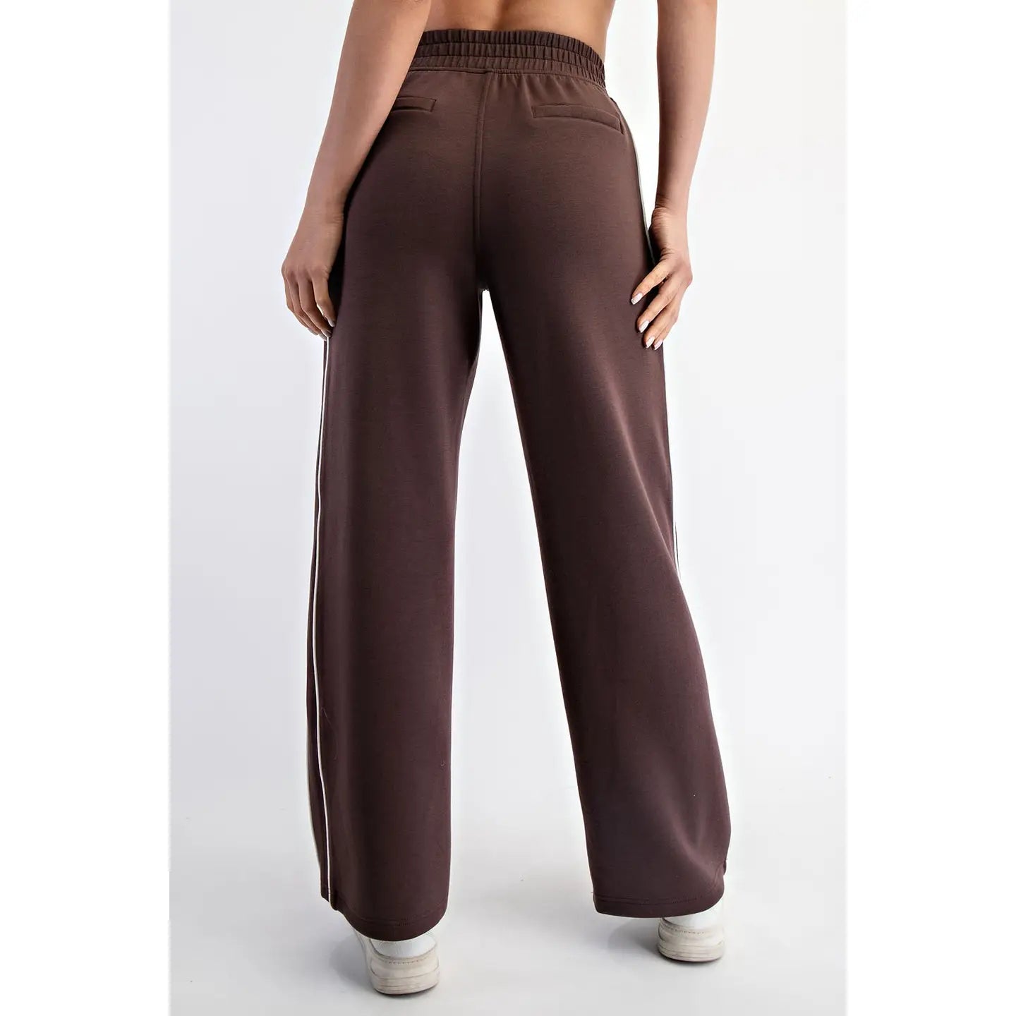 It's Love Modal Scuba Stripe Piping Pants in Espresso/Cream