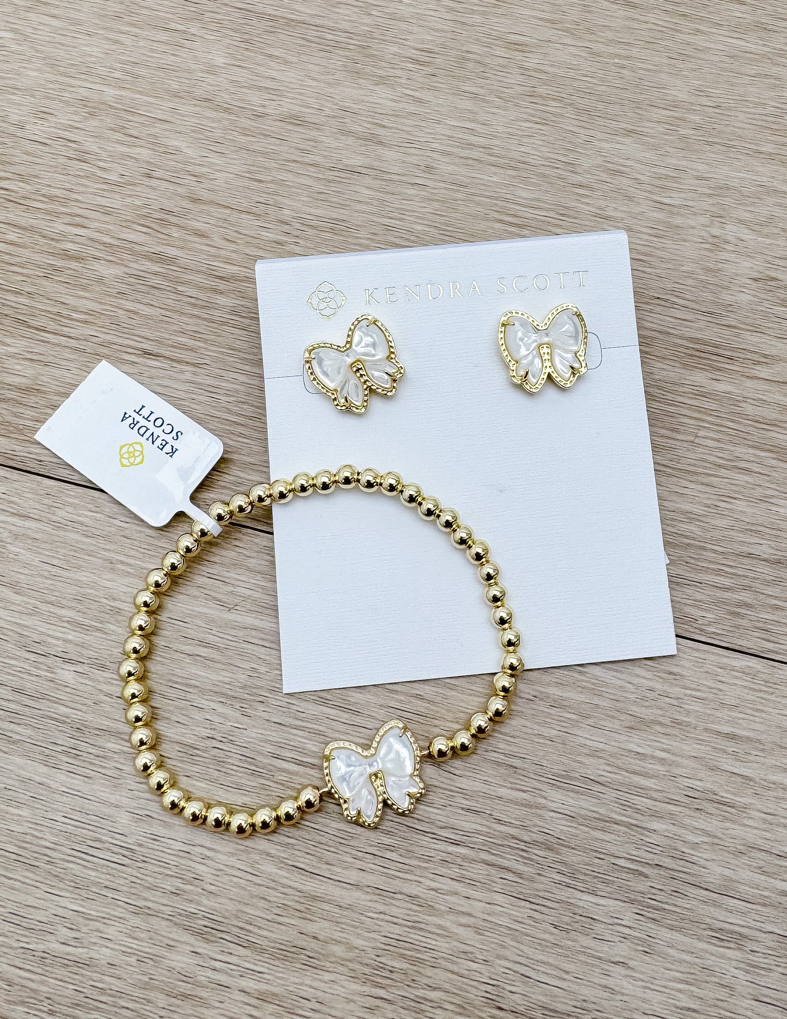 Kendra Scott Haley Bow STRCH Gold Bracelet in Ivory MOP