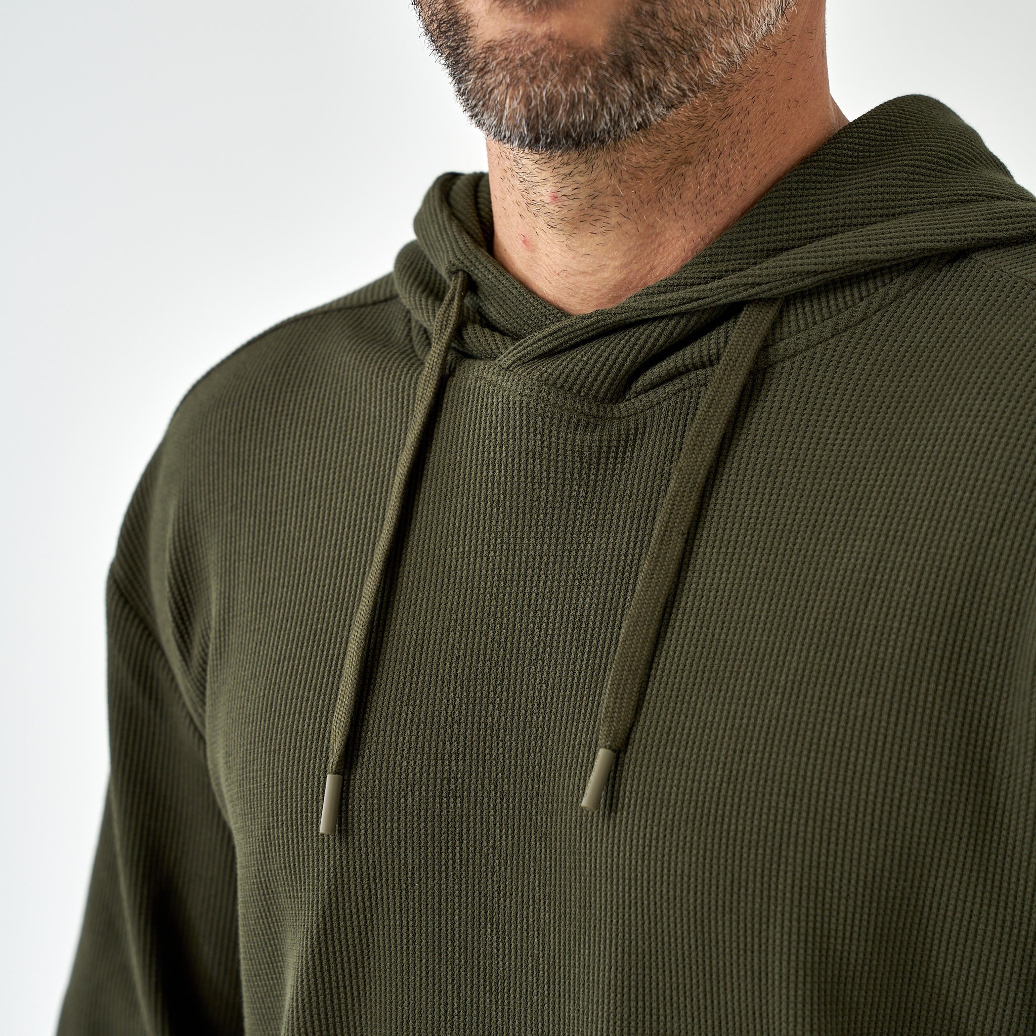- Waffle Knit Pullover Hoodie with Relaxed Fit