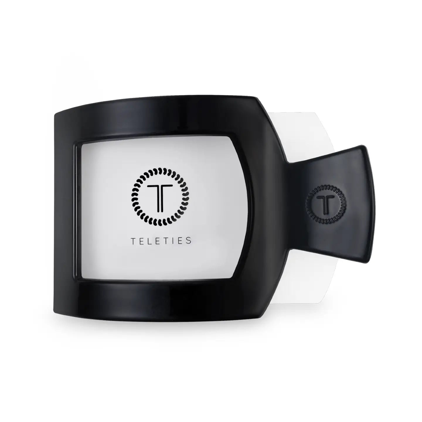 Lay flat and relax with the new TELETIES Jet Black Large Flat Square Hair Clip in Black. This hair clip is designed to allow you to lay back flat, do yoga, or sit comfortably in a seat with a headrest, and it is made with the same material that is nearly unbreakable. Lay down flat with comfort Bendable teeth for a secure yet gentle hold Lightweight, durable, and hair-friendly Perfect for all-day wear—from sunup to sundown The large size is great for thick hair. Sold as an individual unit. The large size is 4.1 inches long.