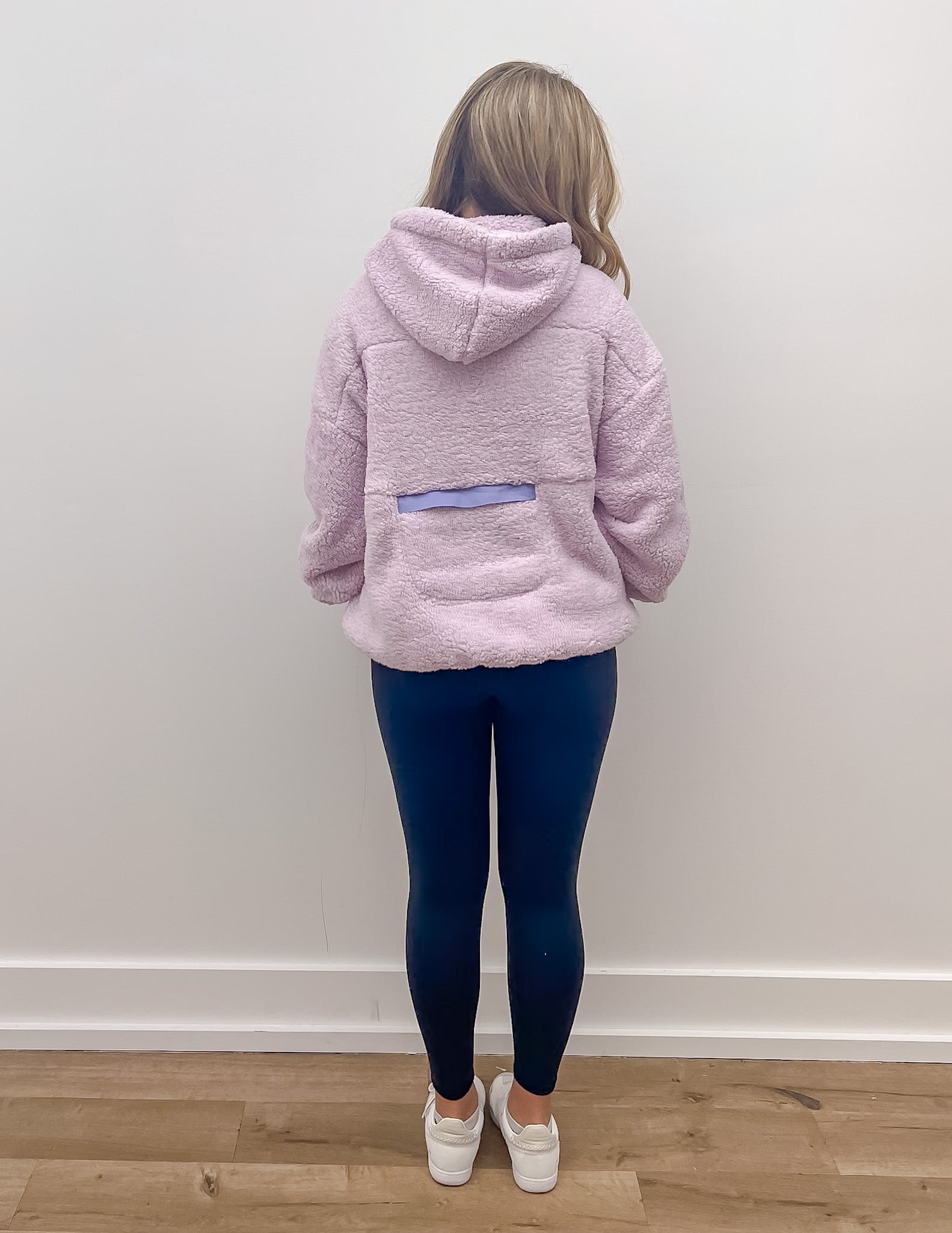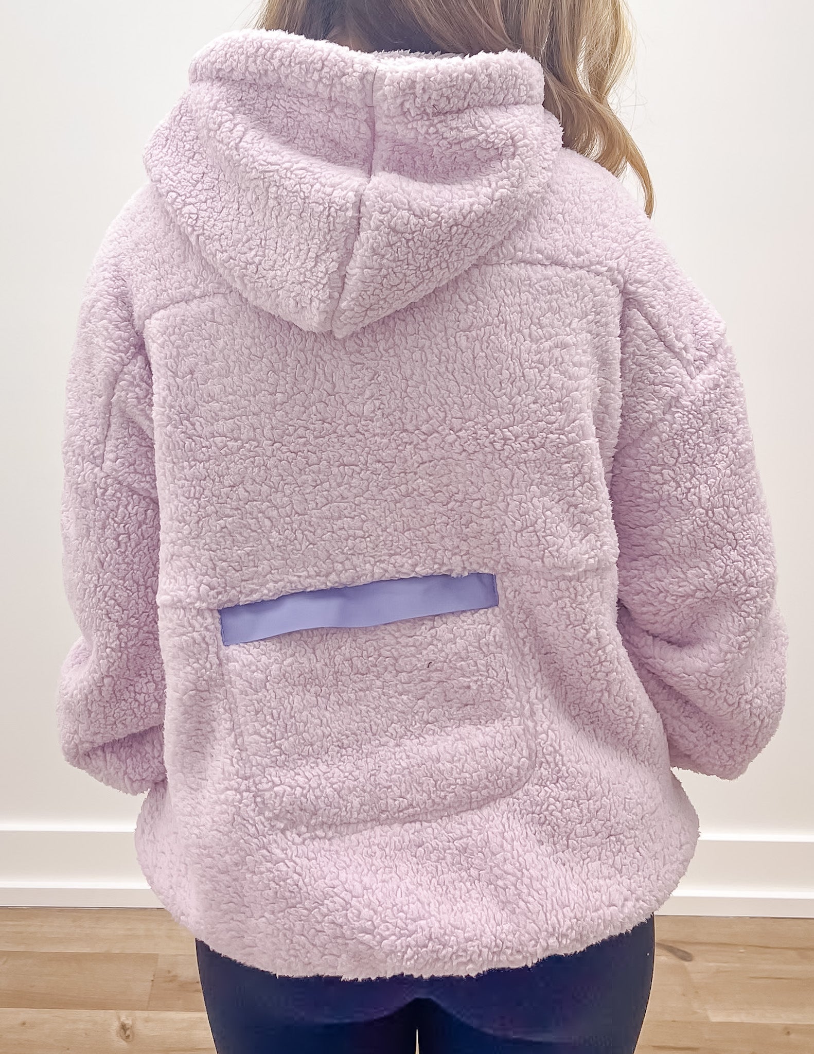 See You Two-Toned Sherpa Pullover Hoodie in Light Purple