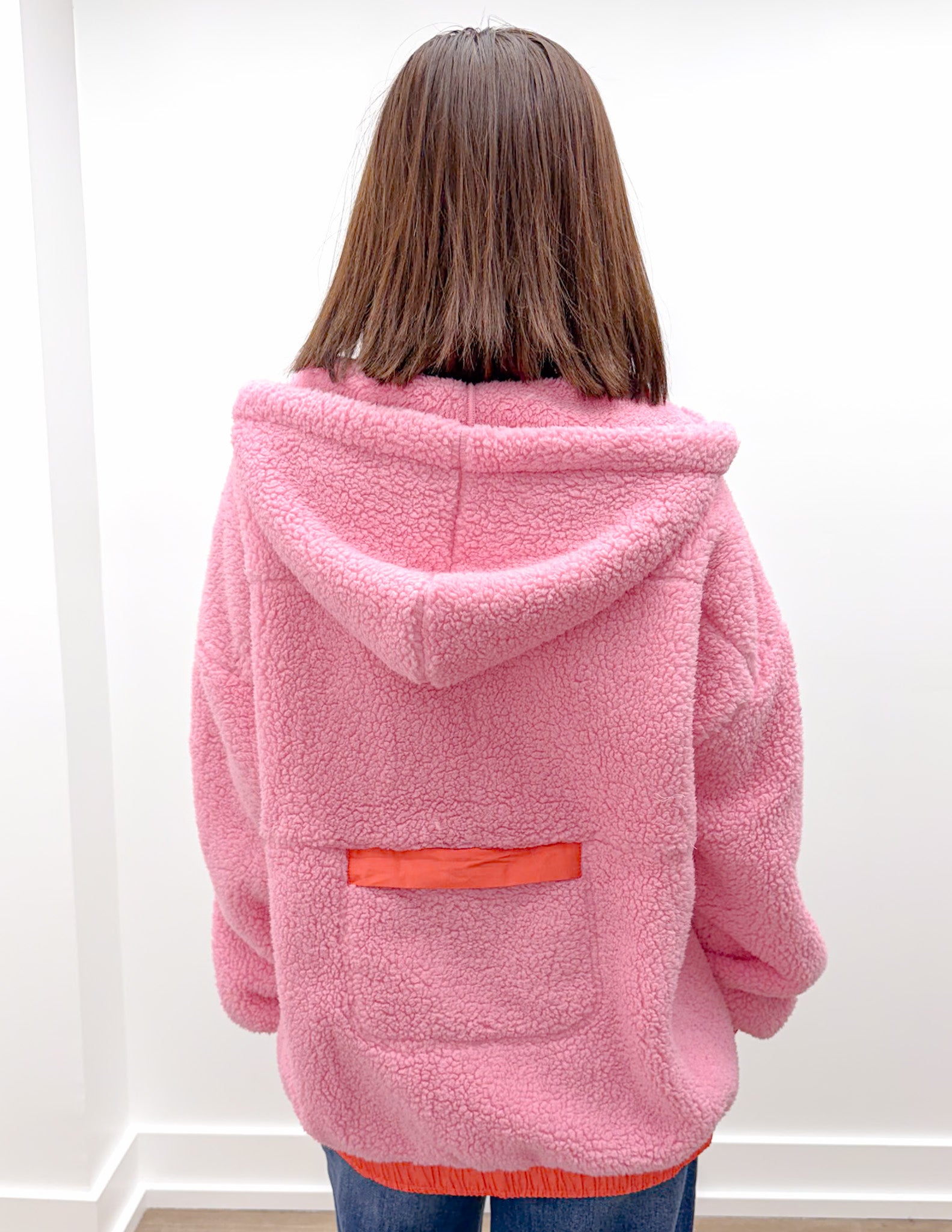 See You Two-Toned Sherpa Pullover Hoodie in Pink