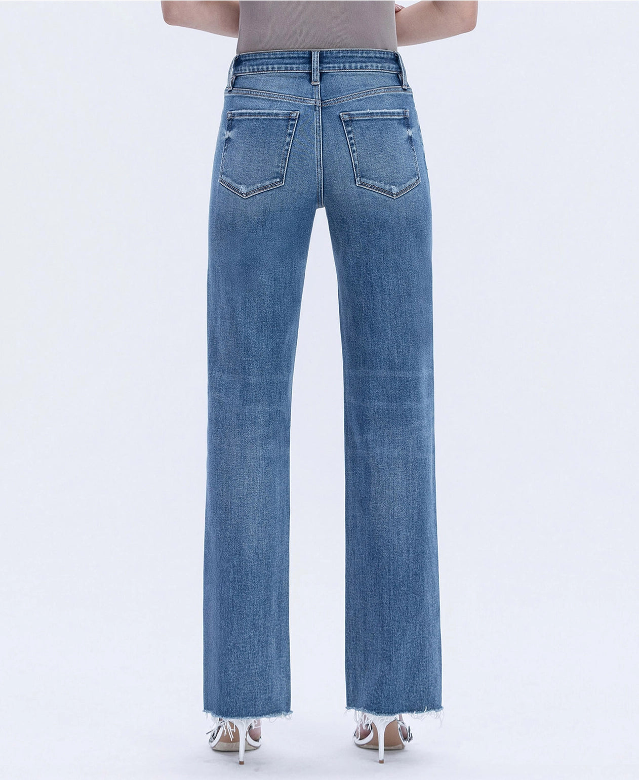 Shake It High Rise Frayed Hem Slim Wide Jeans