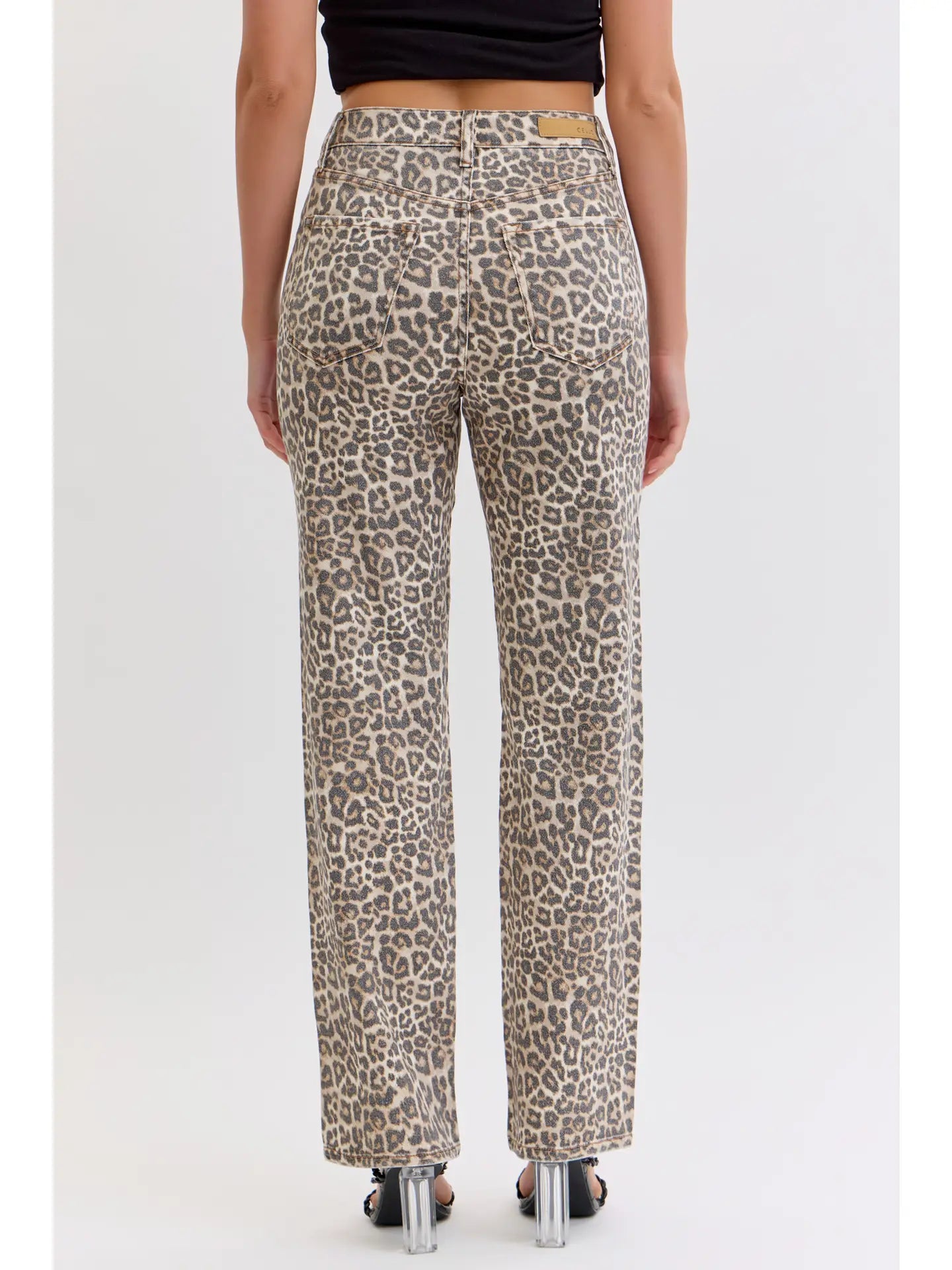 High Rise Dad Jean Belt Loops Zipper Leopard Washed