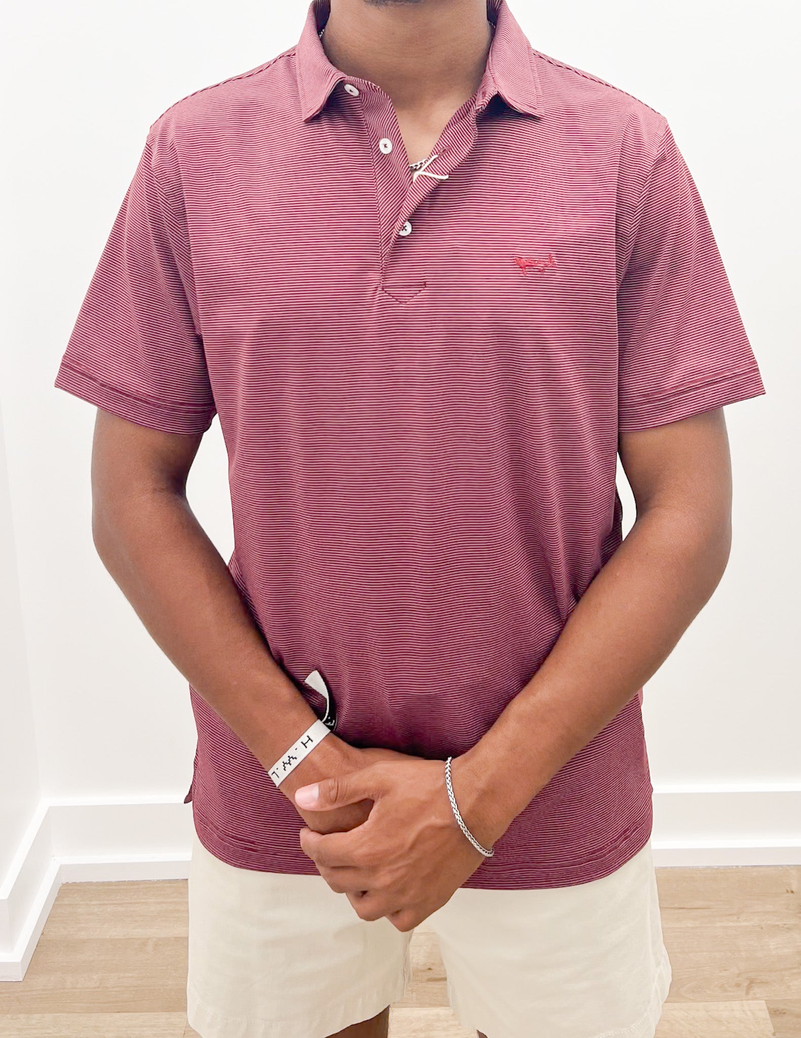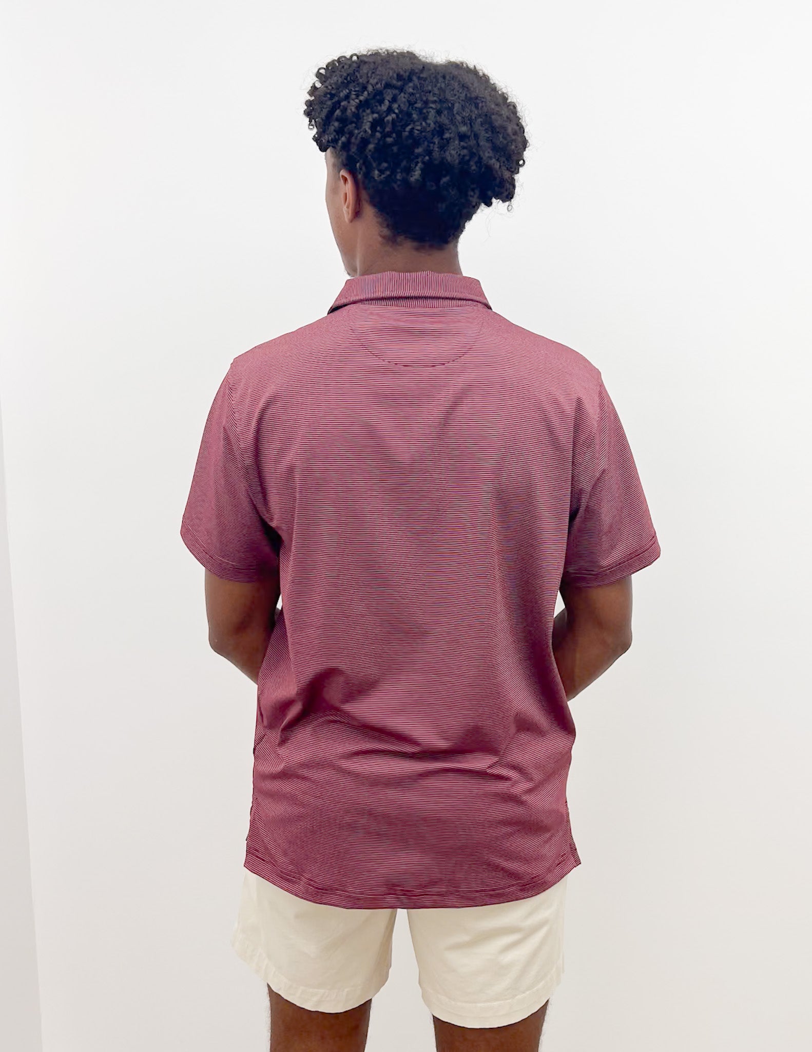 Coastal Cotton Mineral White And Maroon Stripe Polo