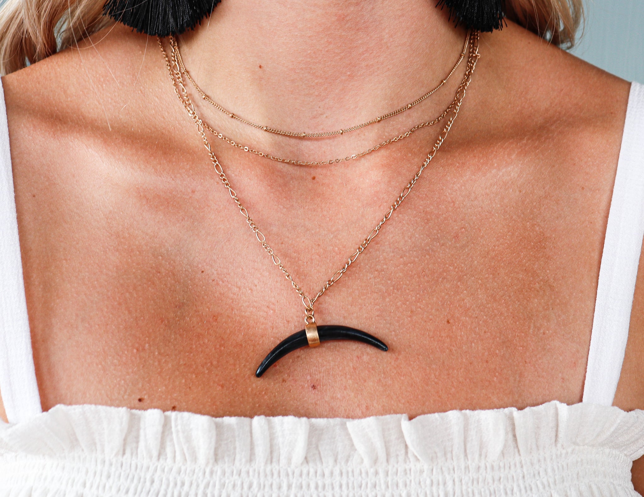 - longest layer has a half moon pendant