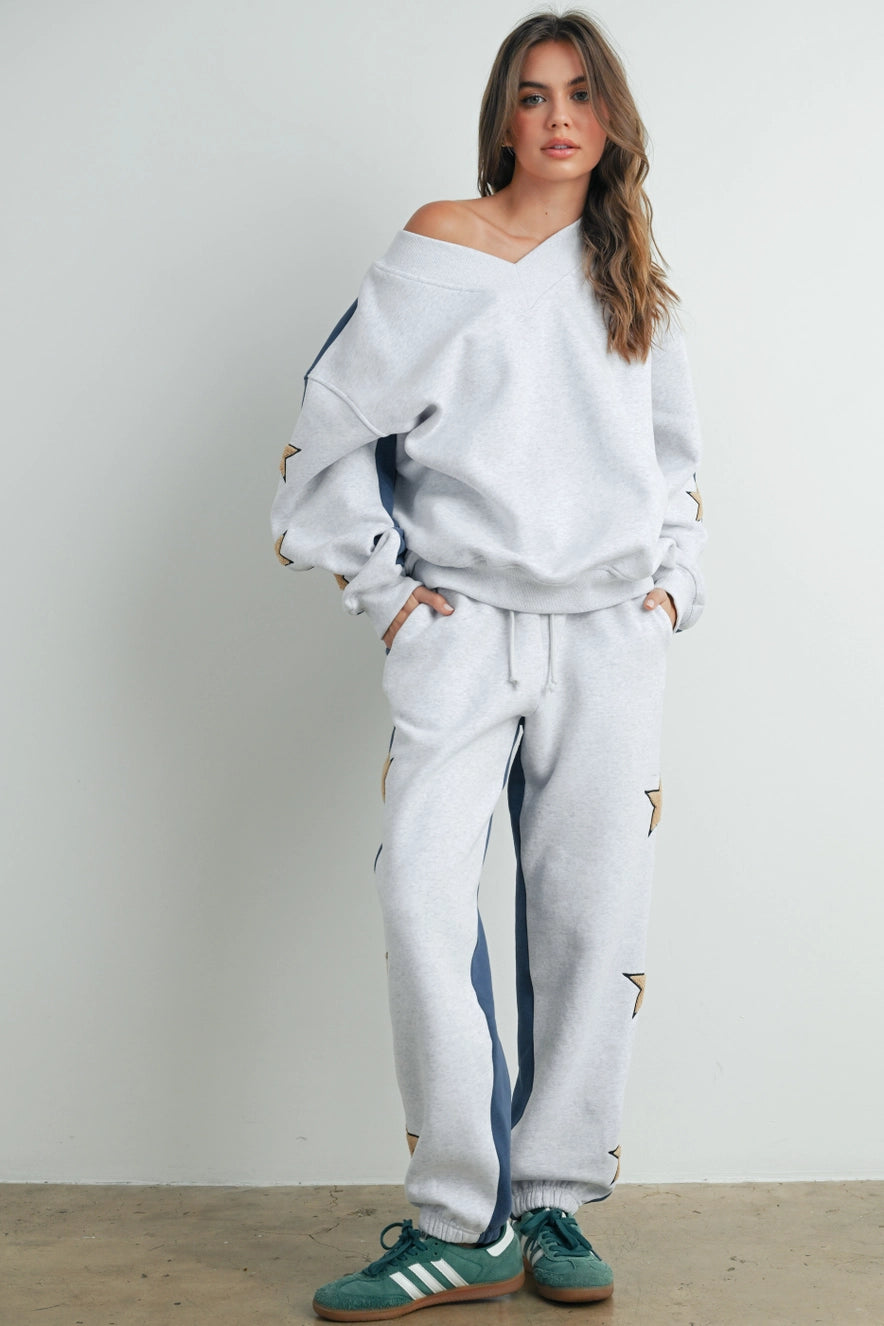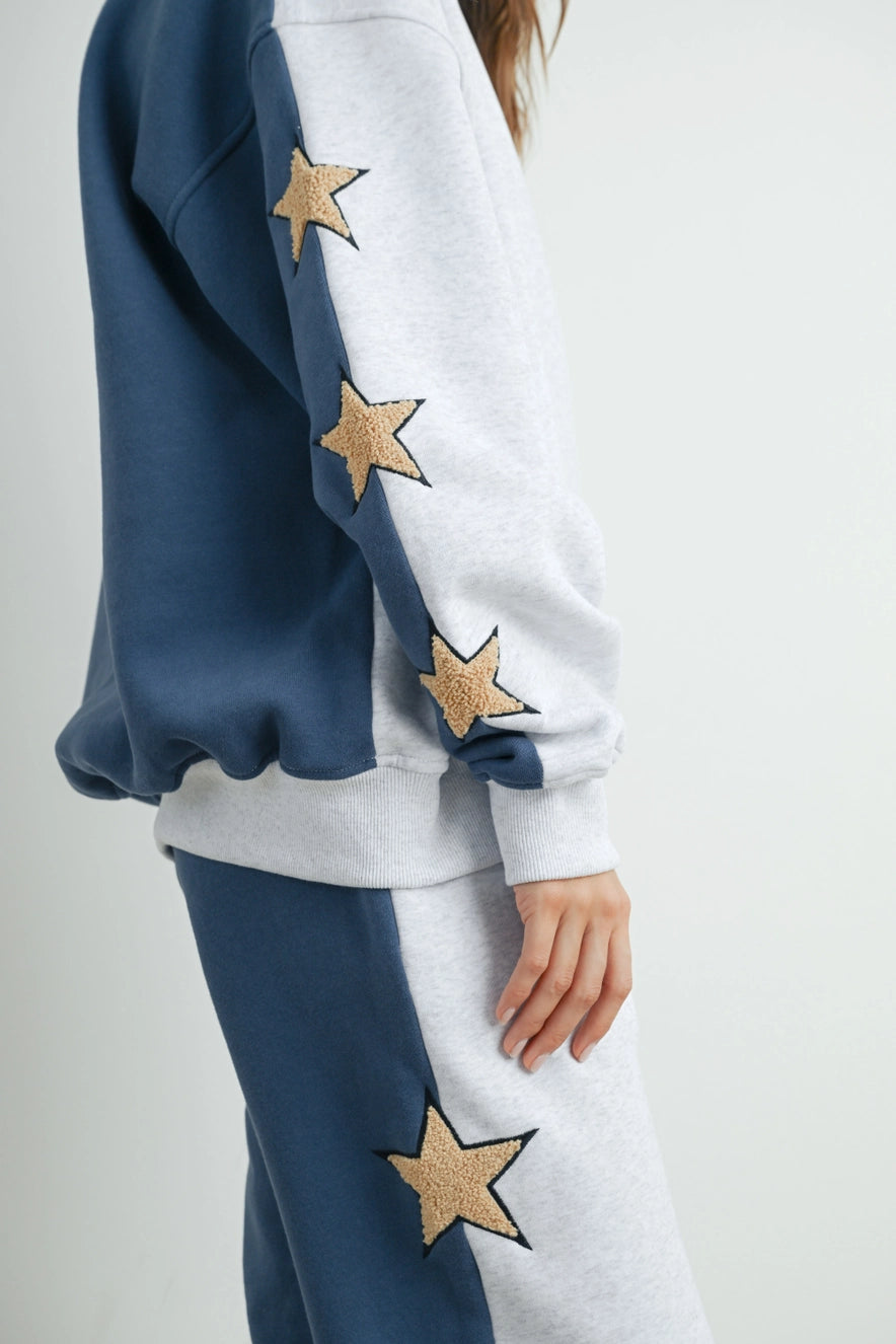 This Long Sleeve Round Neck Sweatshirt features a stylish star detail,