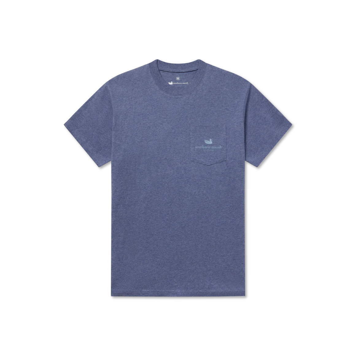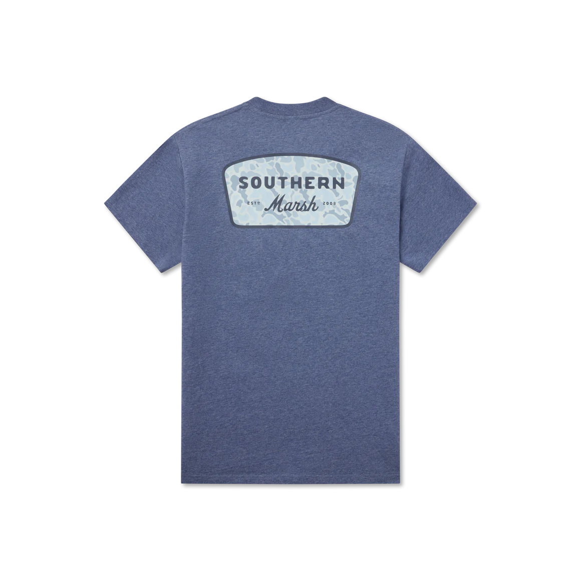 Our Branding - Retro Camo short sleeve cotton tee features Southern Marsh in a camo-filled block design on the back, complemented by a classic chest pocket on front. The ultra soft cotton makes it perfect for everyday wear, blending comfort with style.