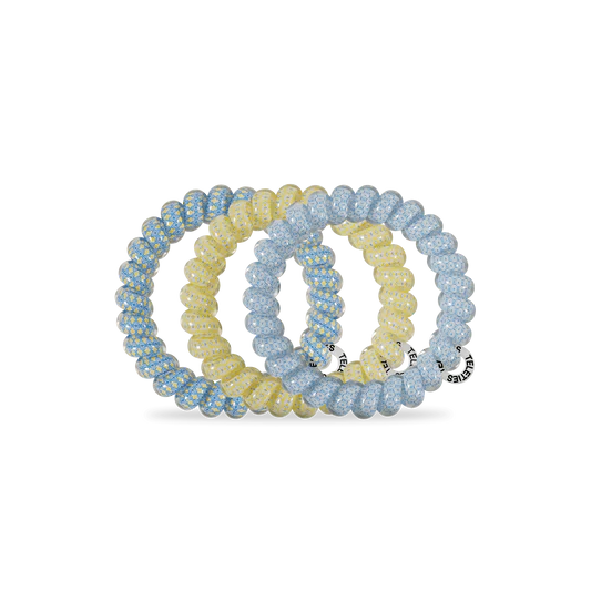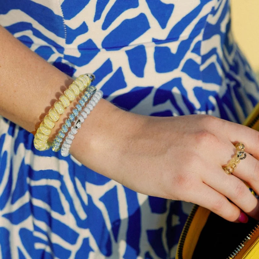 Ciao Bella Large Hair Ties in Yellow Blue offer a strong grip without damage, doubling as a chic wrist accessory when not in use. Your new favorite hair essentials all year round.