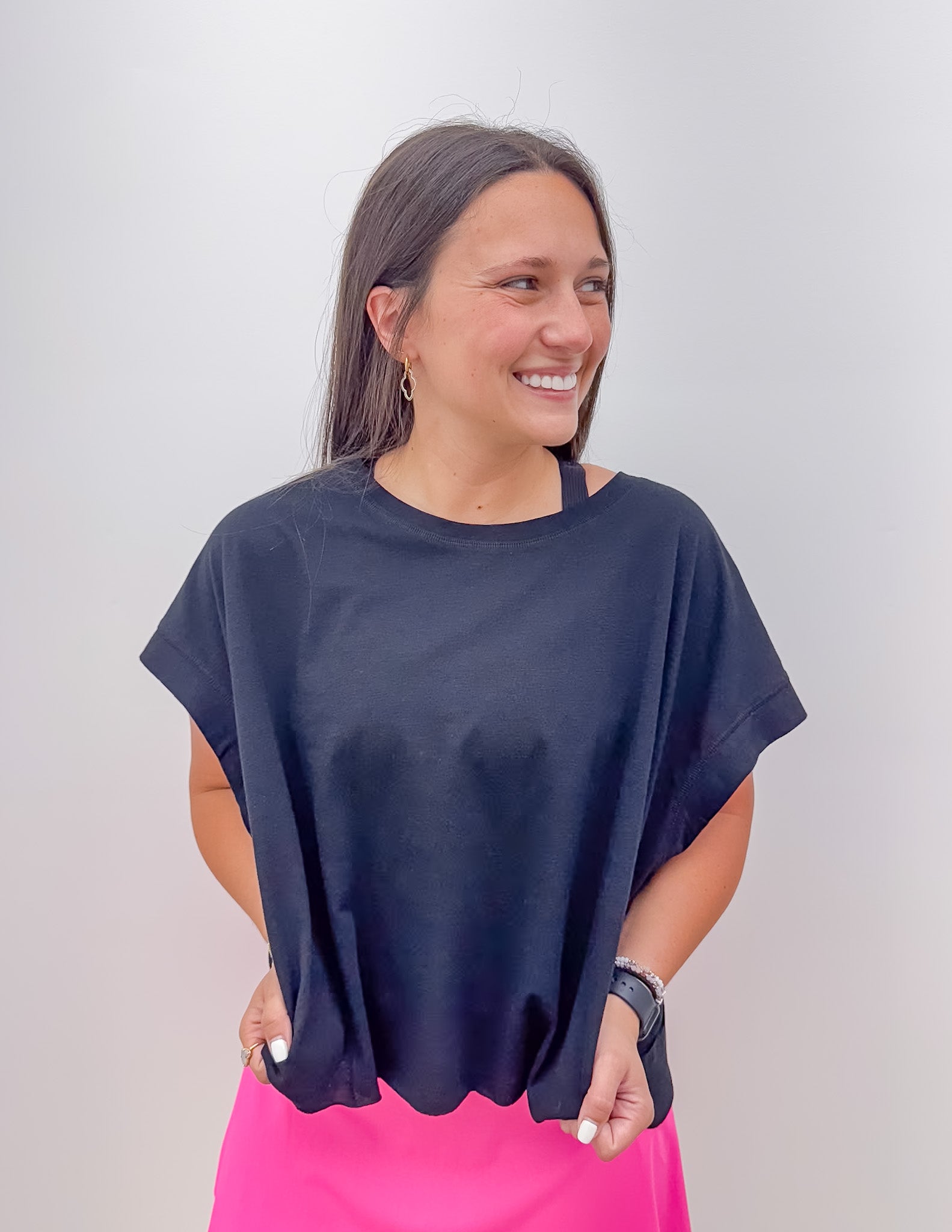 look for any occasion. Features: - Breathable and lightweight cotton slub fabric - Relaxed fit / Oversized - Cropped length - Wide round neckline - Short sleeve tee - Dropped armhole - Open back - Raw edge details
