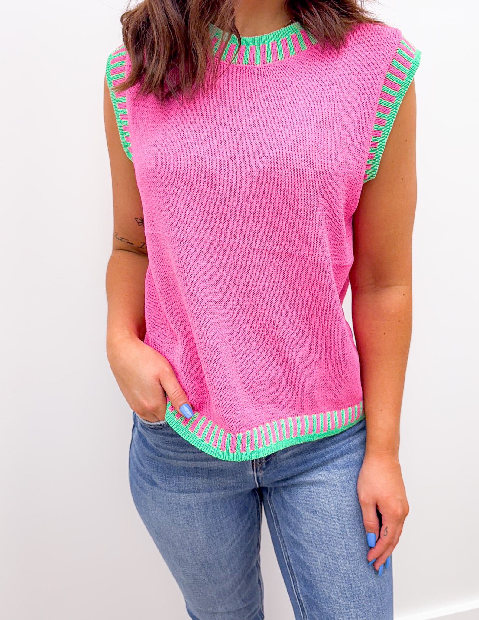 SOLID WITH COLOR BLOCK SLEEVELESS KNIT TOPAdult Female