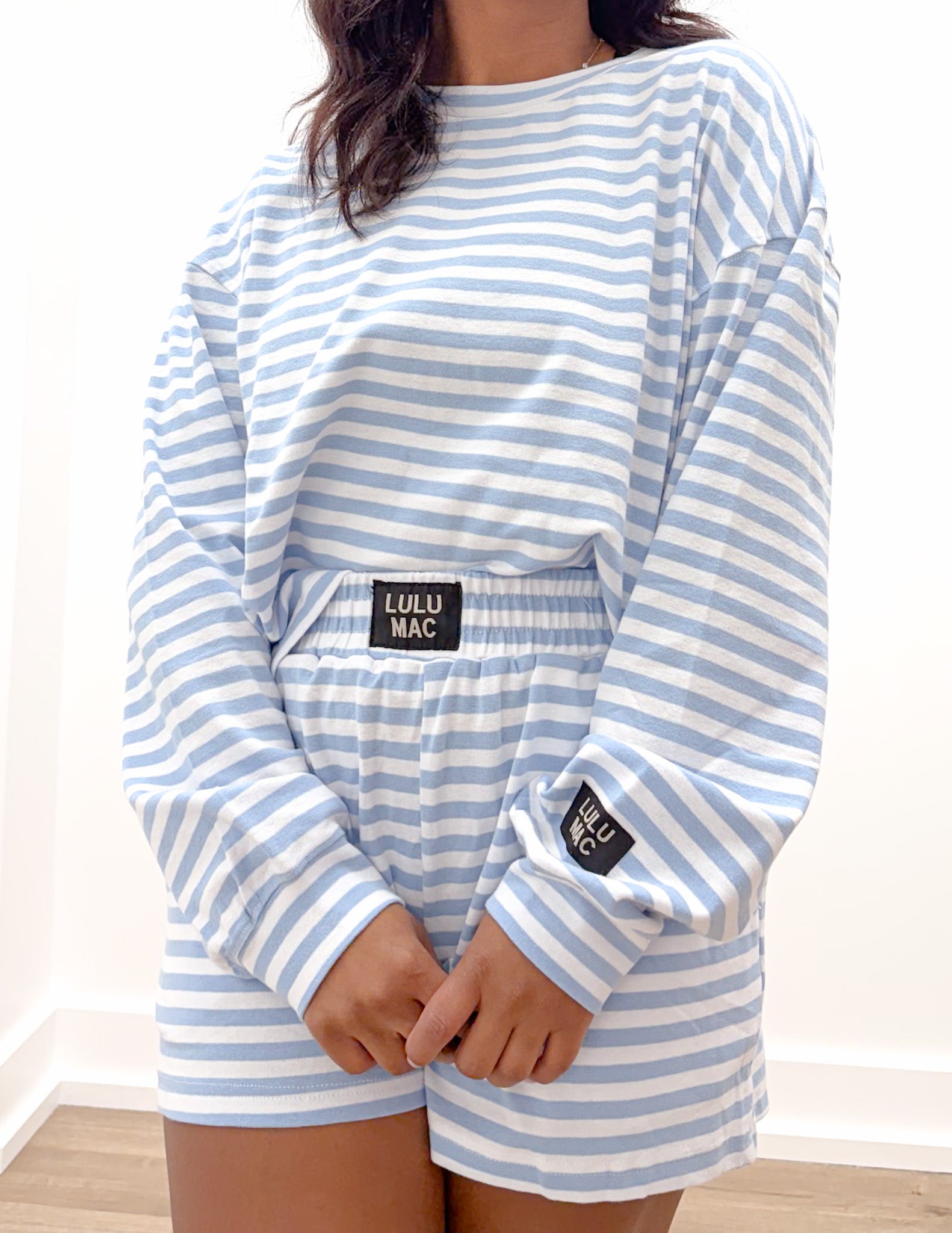 Lulu Mac Stripe LS Top in Light Blue