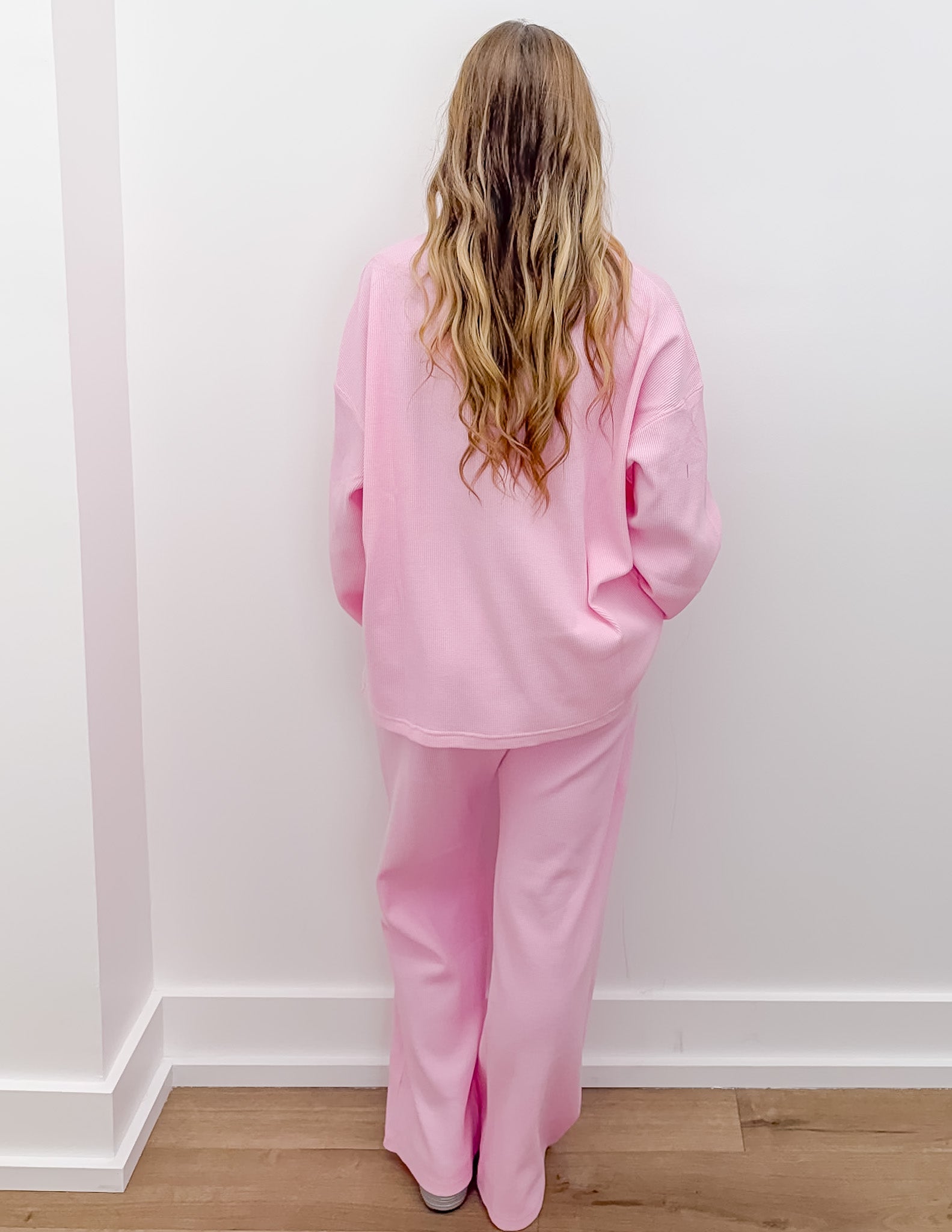 Stay cozy and cute in our Waffle Pop Collection Long Sleeve Top! Made from soft, breathable waffle knit fabric, this relaxed, oversized fit is perfect for lounging, layering, or pairing with the matching pants for the ultimate comfy set. The easy slip-on style makes it effortless, while the timeless design keeps it chic and versatile