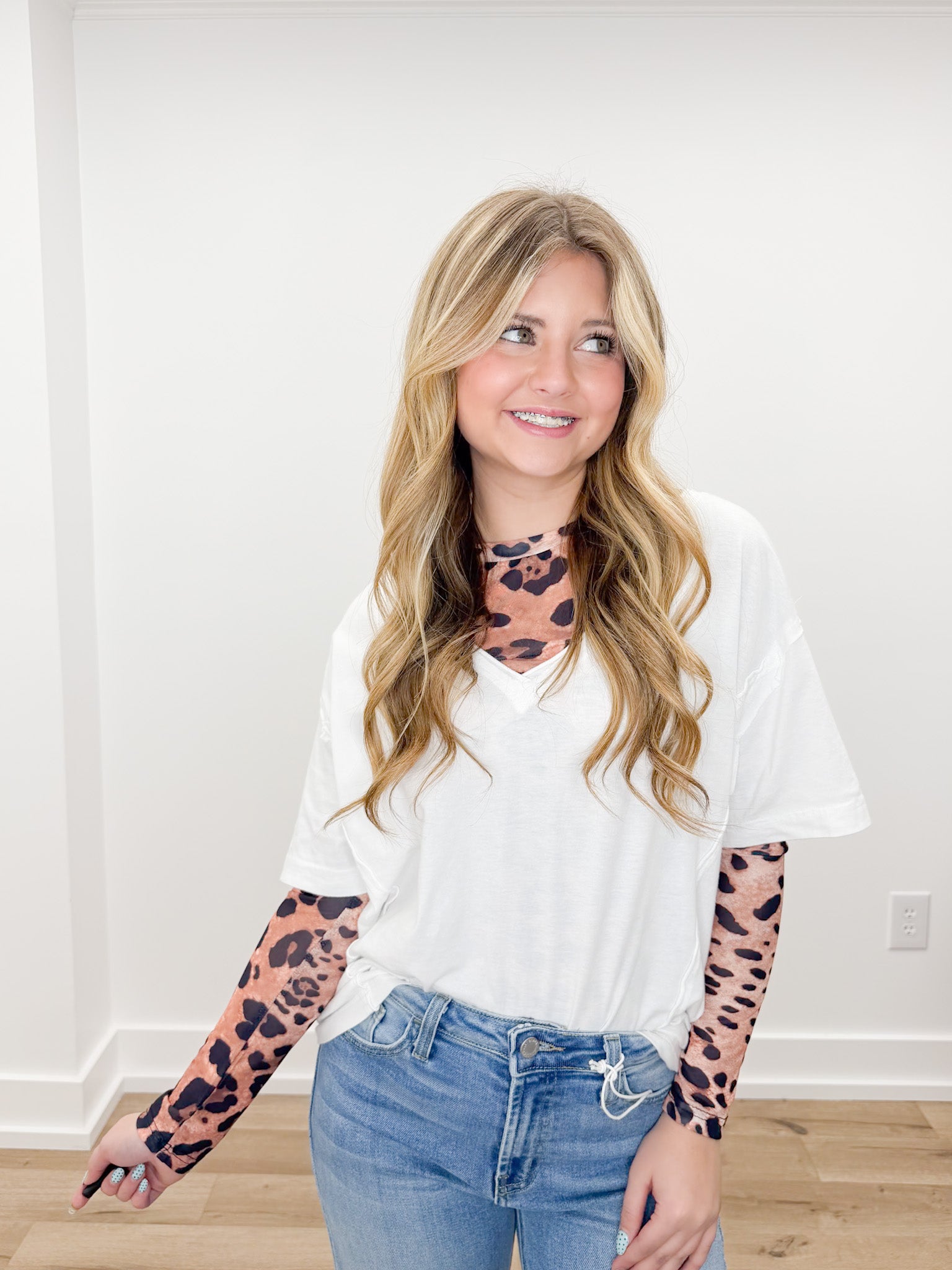 Stylish leopard print for a bold statement. Soft and stretchy fabric for a comfortable fit. Round neckline for a classic look. Slim fit design for a flattering silhouette.