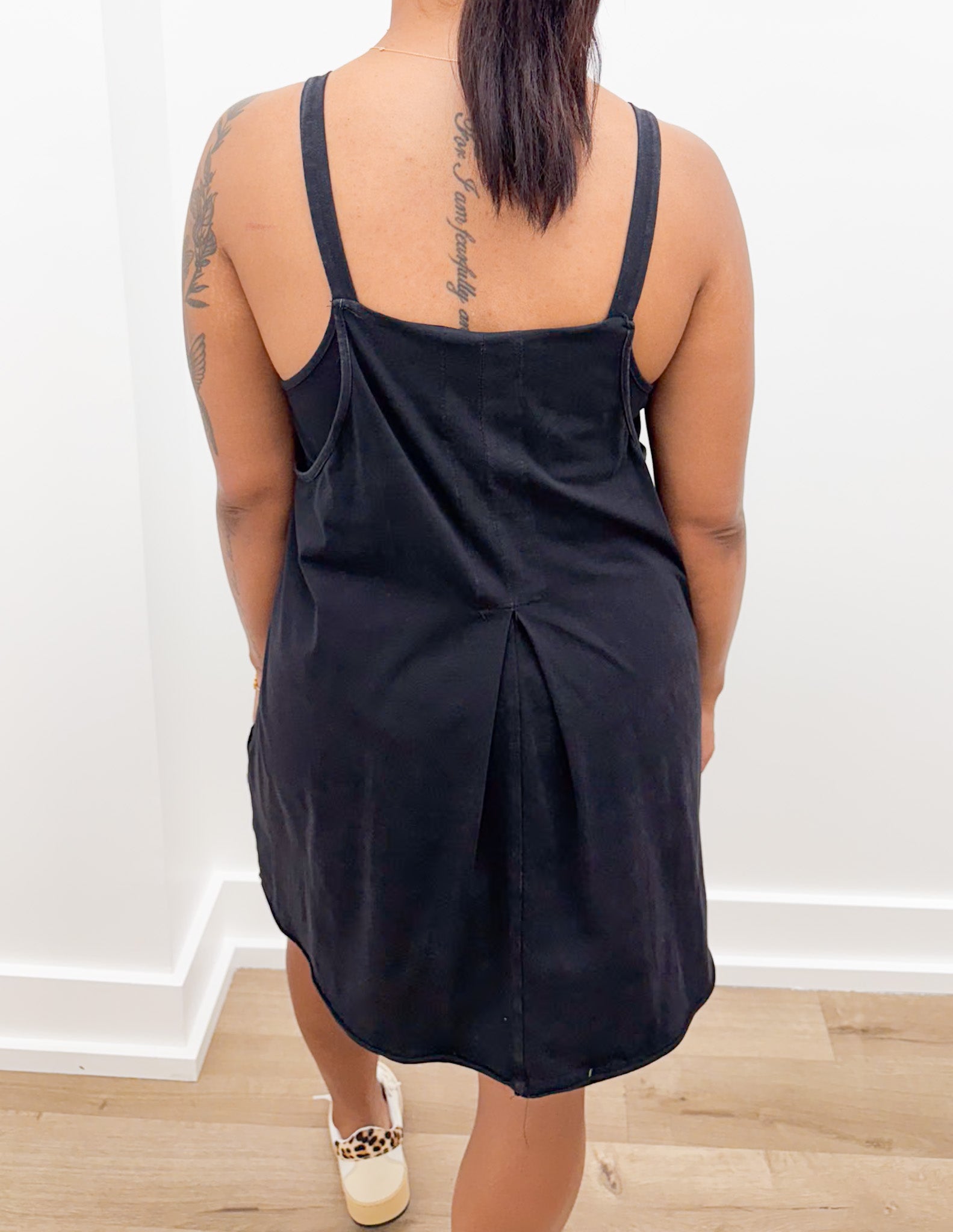 -Mineral Washed Knit Mini Dress with Shorts Inside -Deep V-Neck -Spring/Summer Wardrobe Essentials Style -Basic Essential Mineral Wash Style Dress -Casual Summer Cotton Sleeveless Dress -Raw Edge Detail -Side Pockets adult female