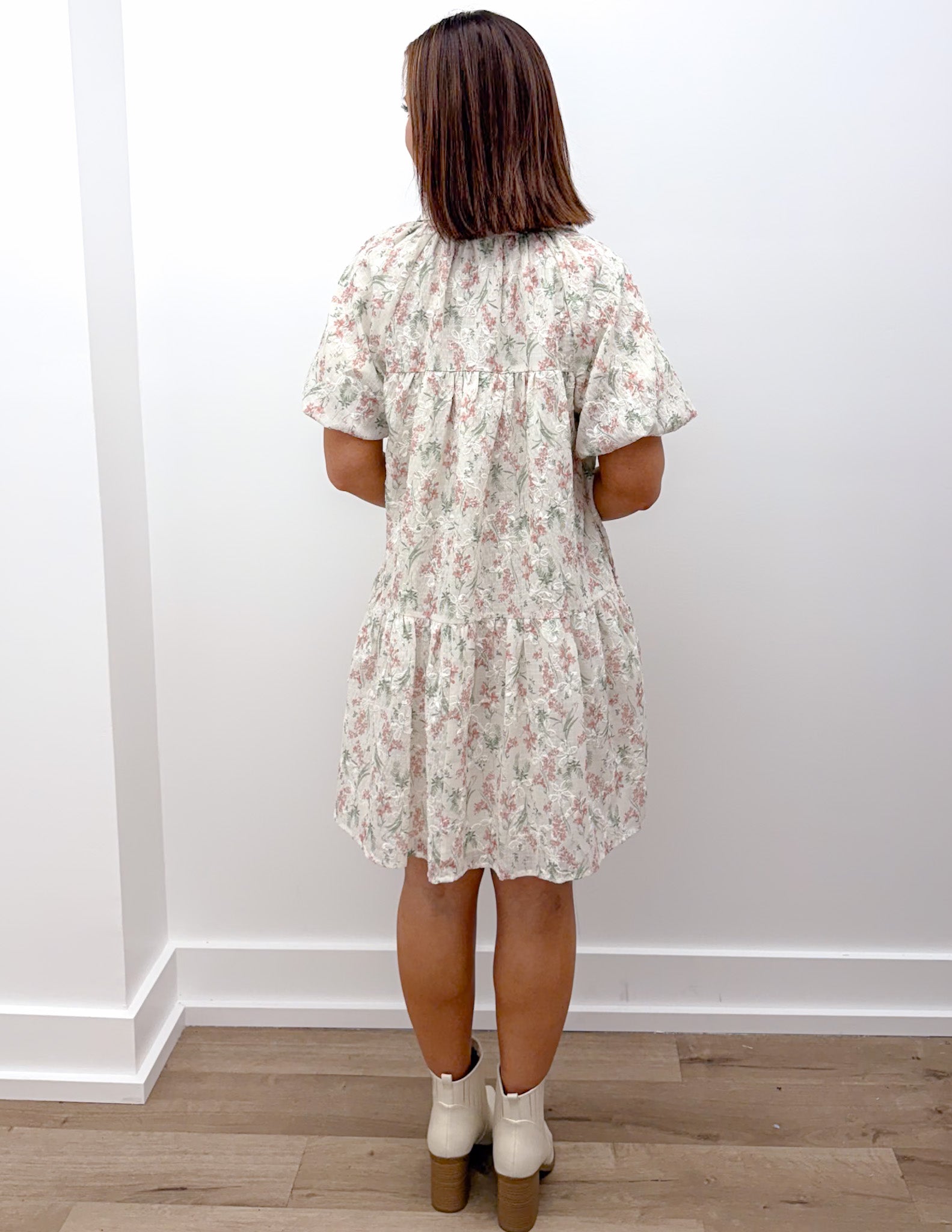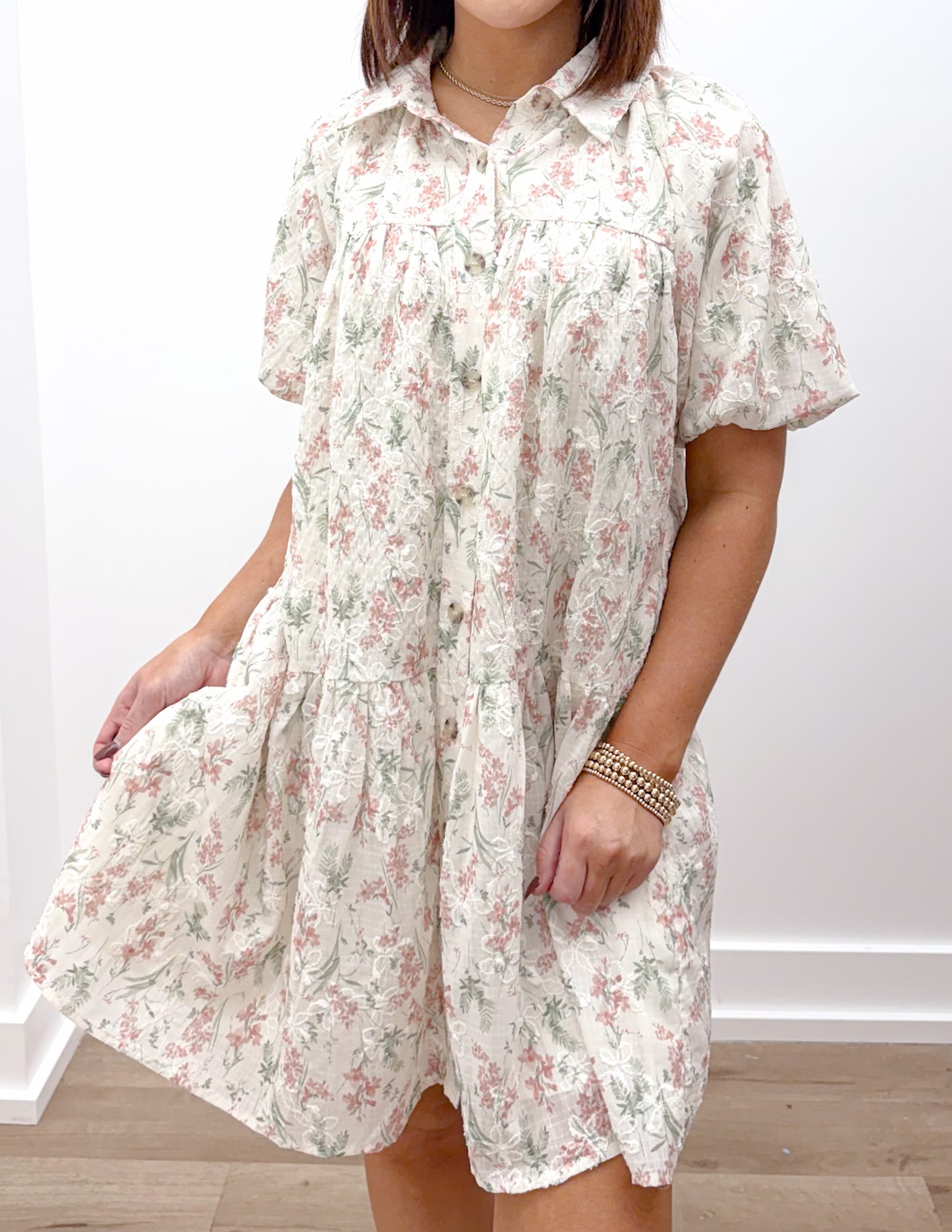FLORAL EMBROIDERED BUTTON-UP MINI DRESS