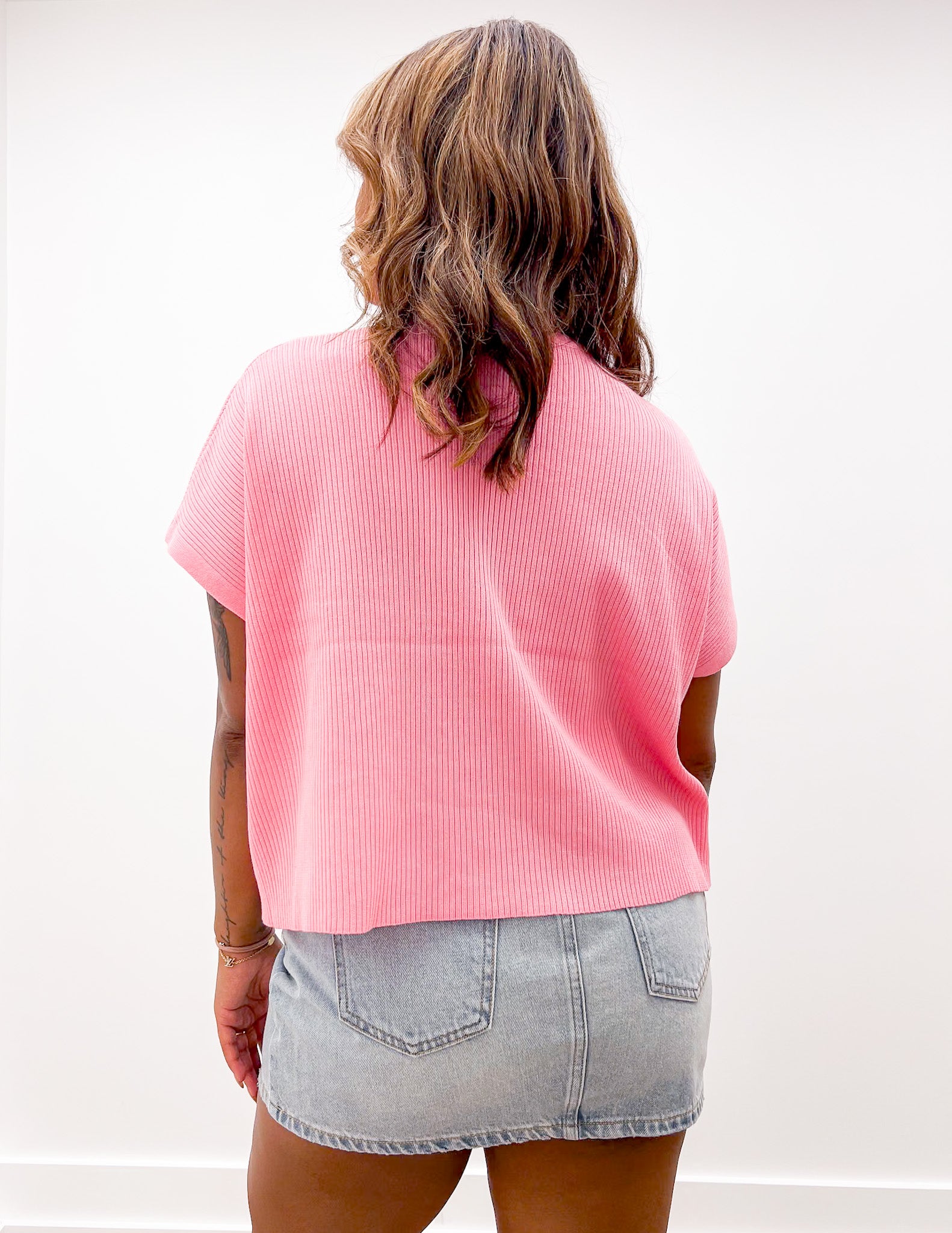 The Way I Feel Mock Neck SS Boxy Sweater Top in Dark Pink