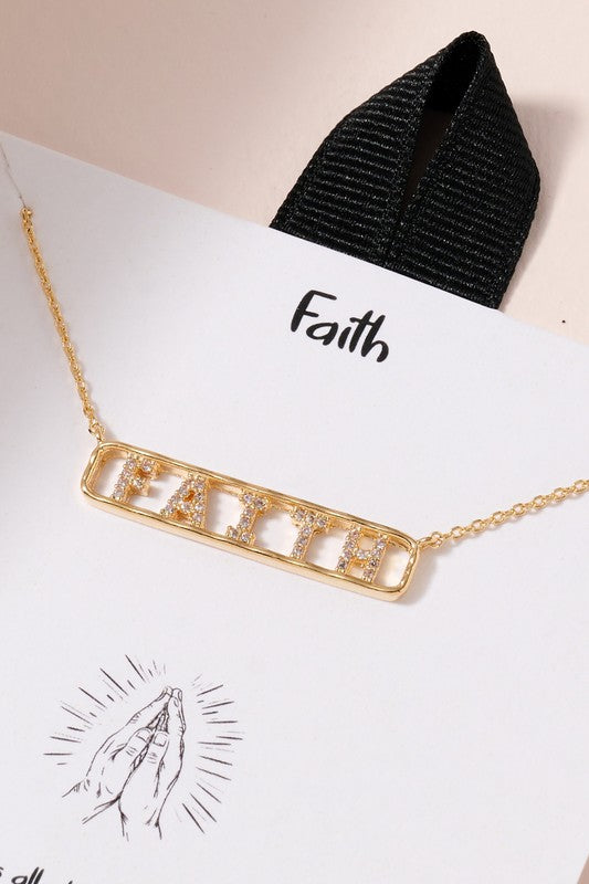 Short necklace with bar pendant and word "FAITH" set with cubic zirconia. Approx: 16"